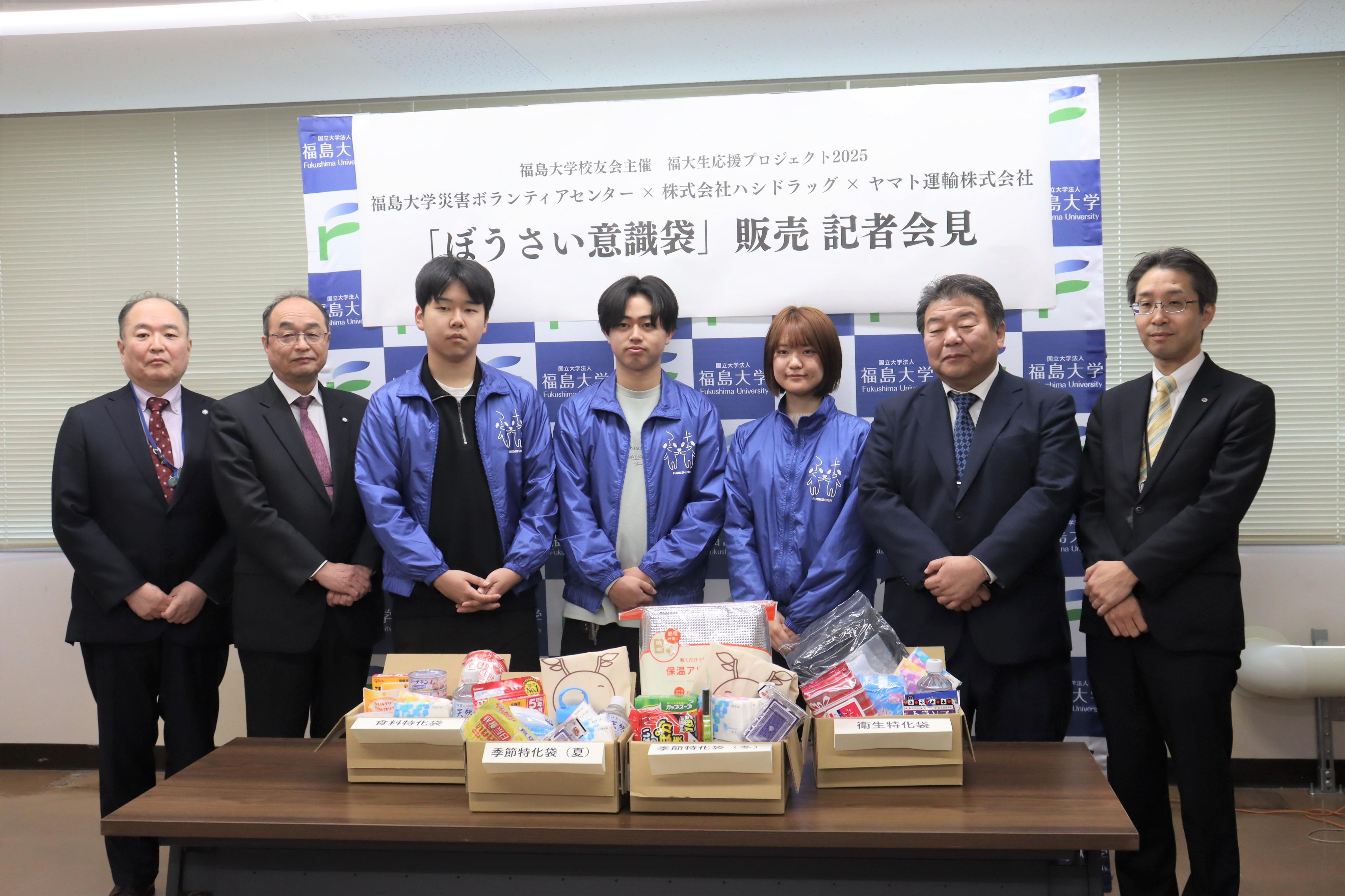 本企画は「福大生応援プロジェクト」の一環として実施され、昨年度までは「ぼうさい支援袋」の名称で販売していましたが、震災から15年が経過し、防災への意識づくりがより重要であるとの考えから、本年度より「ぼうさい意識袋」へと名称を改めました。昨年度に引き続き、売上の一部は能登半島への被災地支援として、日本赤十字社を通じて寄附されます。