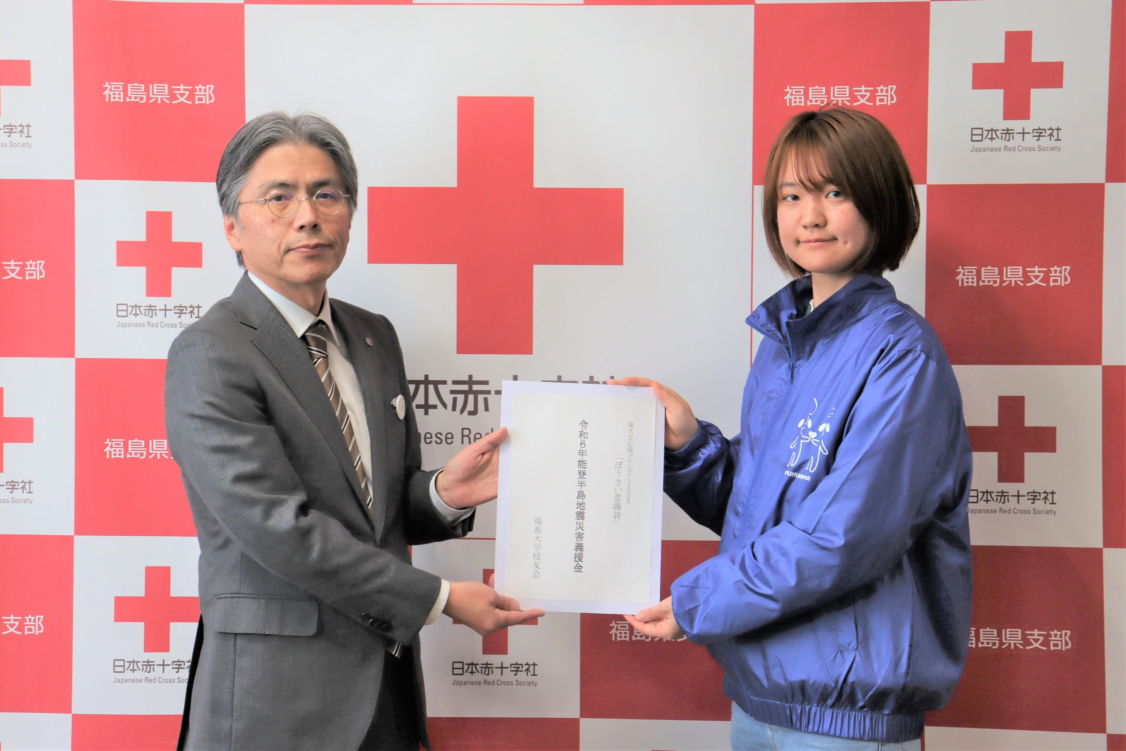 令和8年3月11日には、商品を監修した(学生団体)福島大学災害ボランティアセンターの代表学生より、日本赤十字社福島支部へ義援金を届けていただきました。